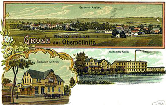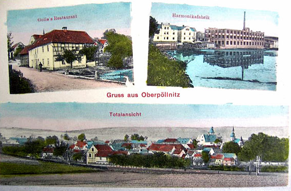 Gesamtansicht des Dorfes um 1910 sowie dem ehemaligen Gasthaus "Golle" und der ehemaligen Harmonikafabrik.