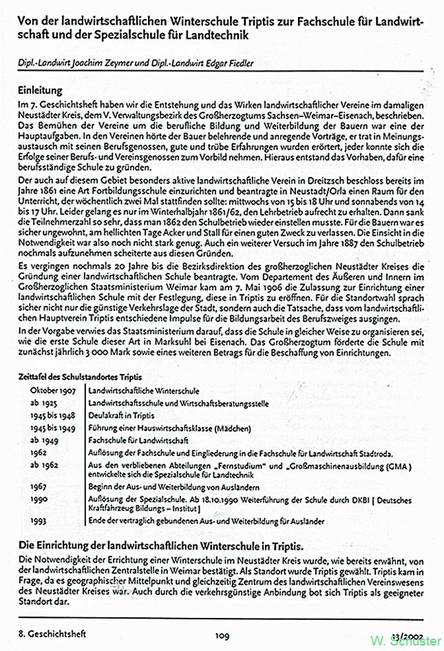 „Eine fachlich, historische Betrachtung von Dipl.-Landwirt Joachim Zeymer und Dipl.-Landwirt Edgar Fiedler, beide aus Triptis, Dozenten an diesen Schulen.“