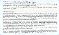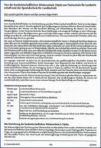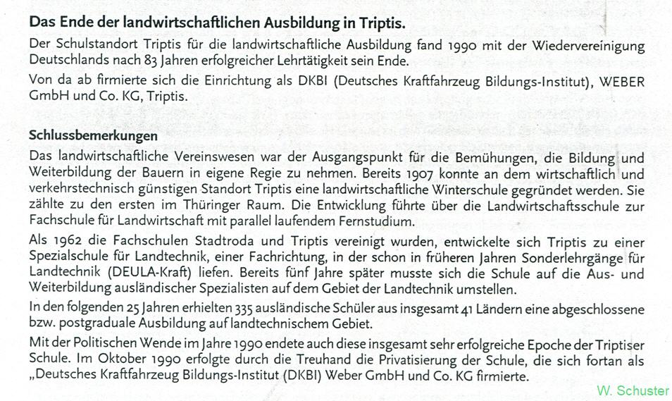 Ein umfangreiches Wissen zu der historischen Entwicklung der Triptiser Landwirtschaftsschulen ermöglicht das Studium des Beitrages von Edgar Fiedler, Schriftenreihe Heft 13/2002 im 8. Geschichtsheft. Auf Grund des Umfanges nicht auf meiner Homepage zu veröffentlichen. Deshalb veröffentliche ich Originaltexte aus diesen Geschichtsheften, um den interessierten Leser auf diese geschichtsträchtige Information aufmerksam zu machen.