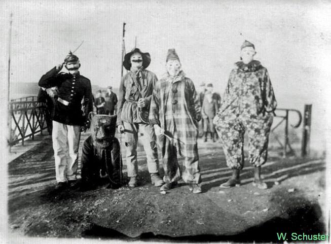 "Im Schloss wohnte auch das Zimmermädchen Frau Minna Greiling mit Tochter Herda. Frau Greiling war eine lebenslustige Frau und oft zu Scherzen bereit. Sie verfolgte den Brauch, wenn jemand Schlachtfest hatte, zog sie sich lustig an und ging am Abend zu den Leuten mit dem Spruch: