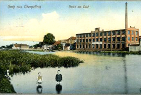 Ansichtskarte Oberpöllnitz mit Harmonikafabrik und Dorfteich ca. 1935