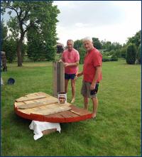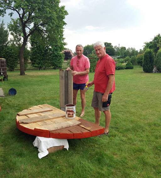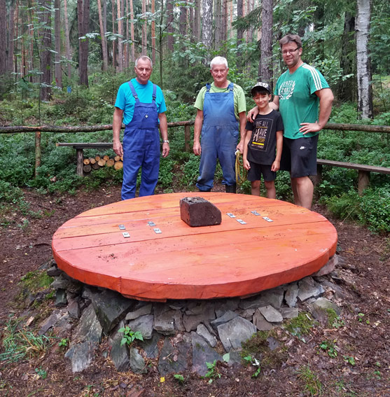 Die Arbeit ist geschafft und eine neue, stabile Brunnenabdeckung erfreut die vier Enthusiasten.