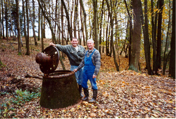 Zwei fleißige Enthusiasten bei der Arbeit der Rekonstruktion der alten Brunnensysteme für die ehemalige Wasserleitung zum Rittergut.