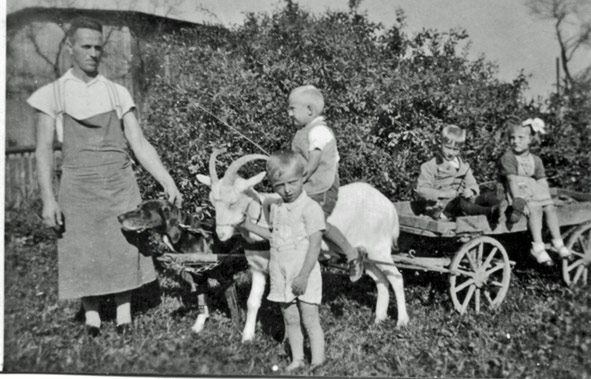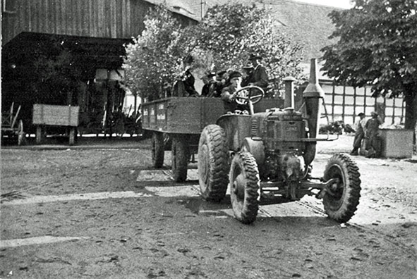 Stallmeister Otto Schuster kam 1935 aus Günzburg mit auf das Rittergut und hatte auch immer ein Herz für die Kinder, deshalb der Spaßausflug. Er ging 1946 wieder zurück in seine Heimat, während Bruder Ulrich Schuster im Ort als Neubauer startete.