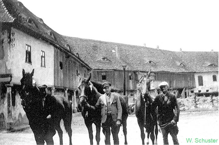 Hofansicht links: Wirtschaftsräume, Wohnungen, Schweine- u. Pferdeställe.