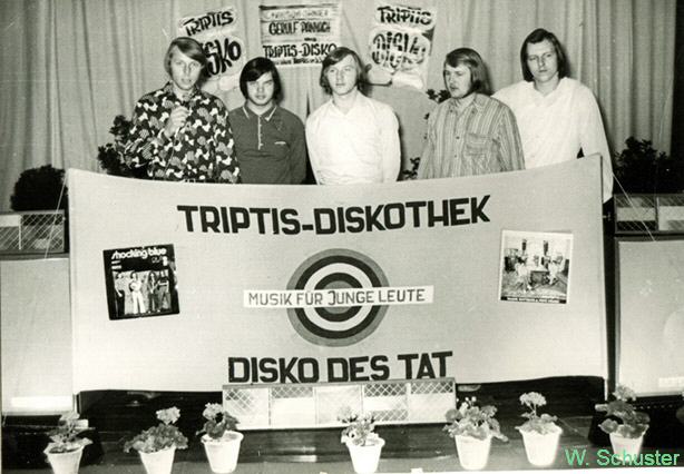 1972 beschließt das Tanzaktiv eine eigene mobile Diskothek aufzubauen. Damit war es möglich, dem Wunsch der Jugend nachzukommen, noch mehr jugendgemäße Tanzveranstaltungen auch an Wochentagen anzubieten. Durch die mögliche Nutzung des kleineren Betriebssaales im VEB Plastunion Triptis konnten diese Erwartungen damit erfüllt werden. Die 1. Veranstaltung im Juni 1972 war eine Solidaritätsdiskothek für Chile, bei der auch eine chilenische Musikgruppe auftrat, deren Mitglieder sich zur Ausbildung an der Betriebsakademie für Landtechnik in Triptis aufhielten. Nach diesem Einstand und der nachfolgenden Auftrittsgenehmigung 1973, gelang es der „Triptis-Diskothek“ des Tanzaktivs, sich mehr und mehr zu profilieren und zu einem festen Bestandteil des Veranstaltungsangebotes in der Stadt zu werden. Es wurden vorwiegend gestaltete Programmdiskotheken organisiert und das nicht nur für die Jugend. Die gelungenen Silvesterabende sind bei der Bevölkerung noch immer in guter Erinnerung.