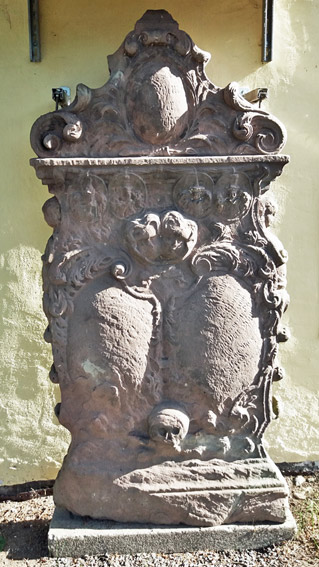 Das Epitaph im Original steht an der Kirchenaußenwand.