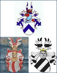 Das Stammwappen zeigt auf Silber einen roten Pfahl. Auf dem Helm ein offener, roter Flug mit weißen Schwungfedern. Die Decken sind Rot und Weiß.