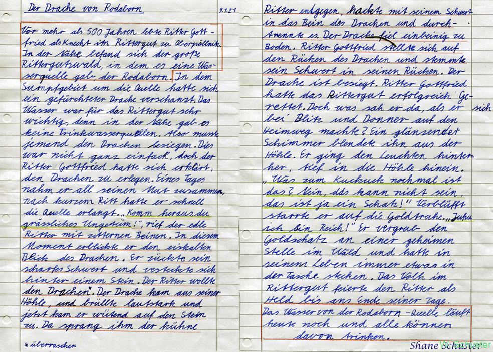 Die Grundschüler der 4. Klassen in Triptis behandelten im Dezember 2020 im Deutschunterricht den Unterschied zwischen Legende und Sage. Daraufhin erfolgte die Aufgabe, eine Geschichte zu entwickeln zu einer dieser Varianten, auch um Grammatik und Rechtschreibung zu üben. Mein Enkel Shane Schuster als junger Hobbyhistoriker und Schatzsucher entschied sich für die Sage von der Rodaquelle (Rodaborn) in Nähe von Oberpöllnitz.